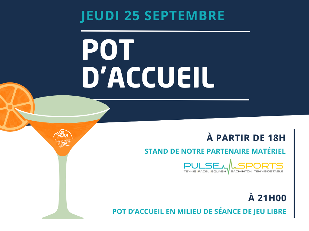 Le VB01 vous accueille pour le traditionnel pot d’accueil qui aura lieu le jeudi 25 septembre. Notre nouveau partenaire Pulse sports